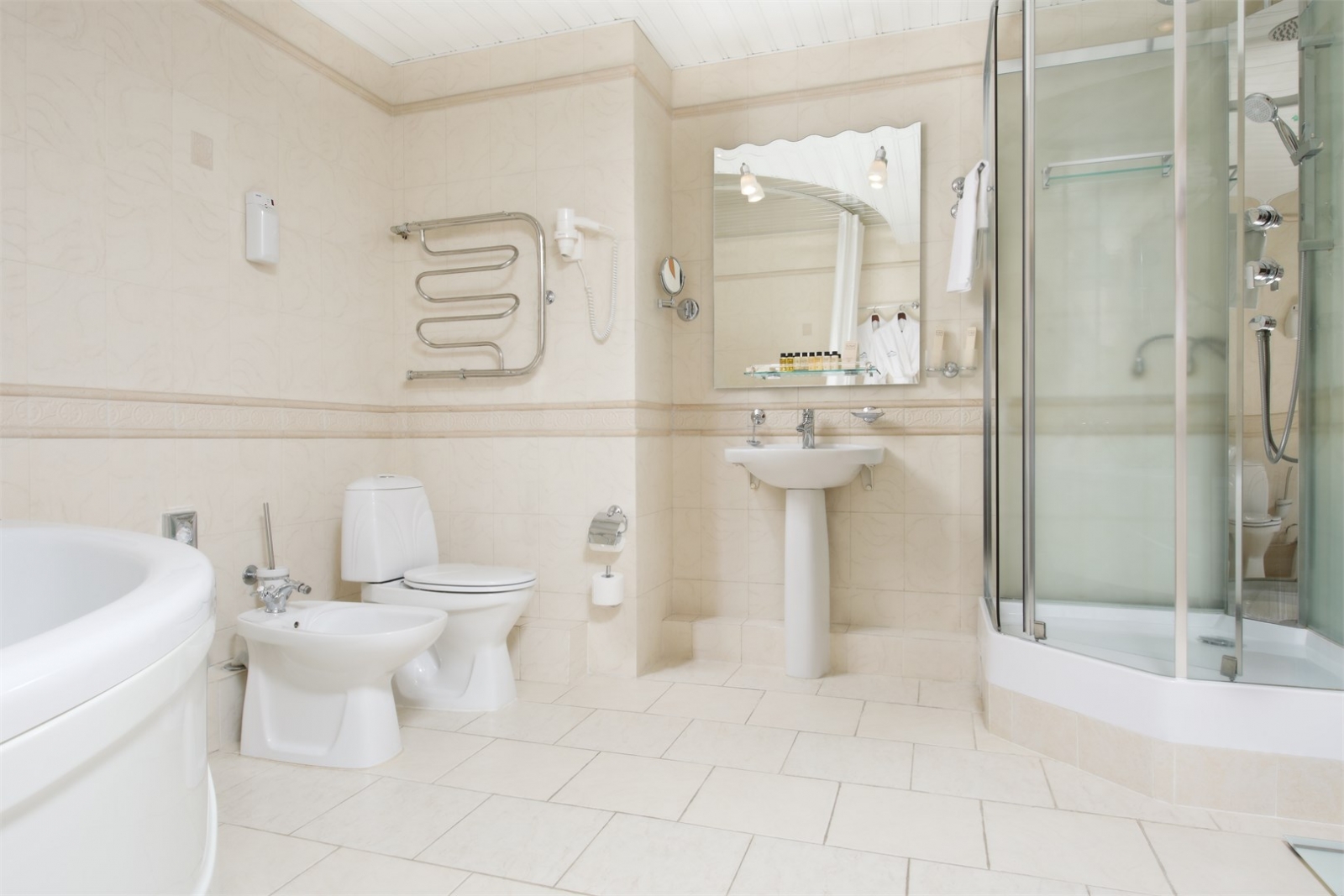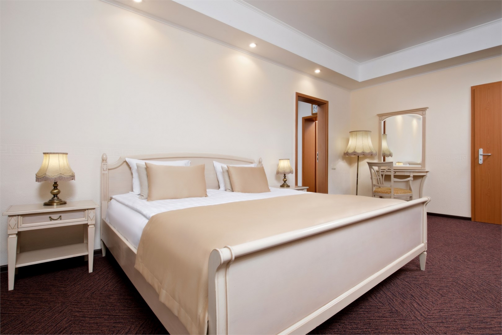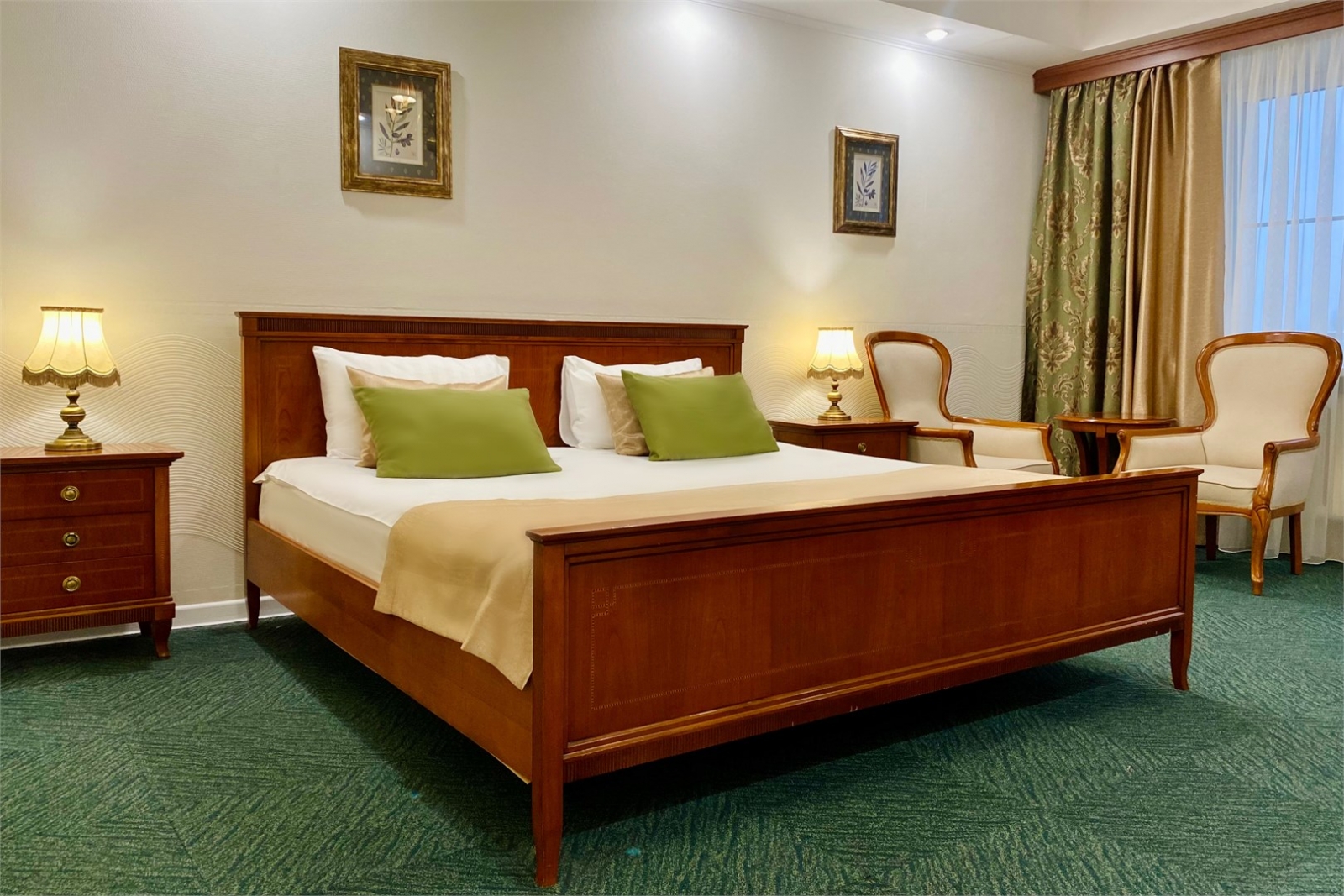 Площадь номера 92 м2. При размещении в люксе высшей категории гостям предоставляется расширенная медицинская программа, питание в ресторане «Lermontoff» (система меню-заказ), безлимитное посещение SPA-комплекса «Итальянские термы». Роскошный и самый большой номер, предлагаемый санаторием для размещения. В нем будет особенно комфортно проживать при длительном сроке отдыха и лечения. Большая площадь, со вкусом подобранная мебель создают по-домашнему уютную атмосферу в номере. На балконе имеется мебель для отдыха.
